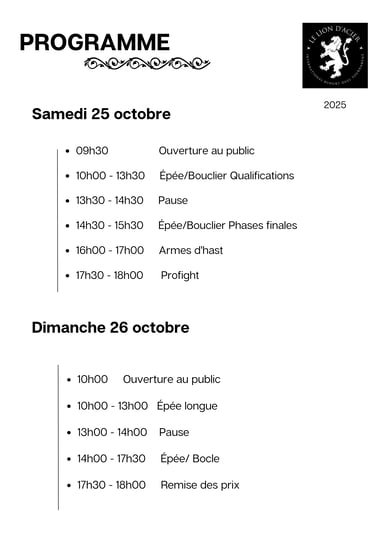 Les compétitions se dérouleront selon le règlement officiel Buhurt International et en respectant la charte d'authenticité des équipements.